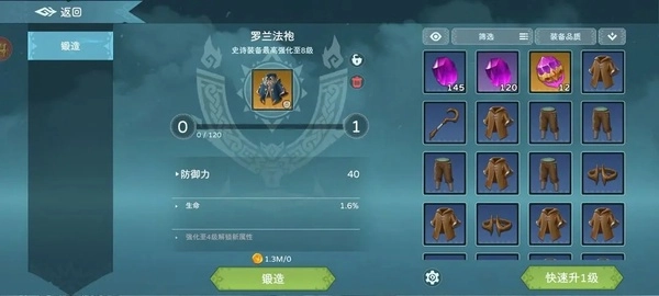 蓝色及以上品质的装备能够开展锻造操作,从而进一步增强装备所带来的属性加成。