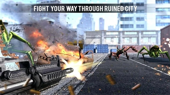我玩的是第一人称视角的FPS射击游戏,能在城市里自由穿行,目标是把那些快要毁灭人类的外星人全都消灭掉。