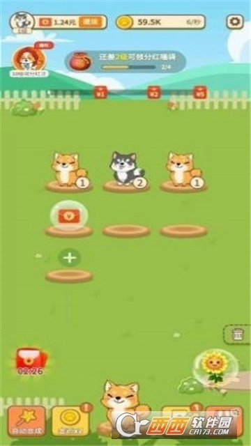 1、无限制升级小狗,这些可爱的狗狗里你最喜欢哪一只呢?记得随时留意它们的赚钱能力哦。