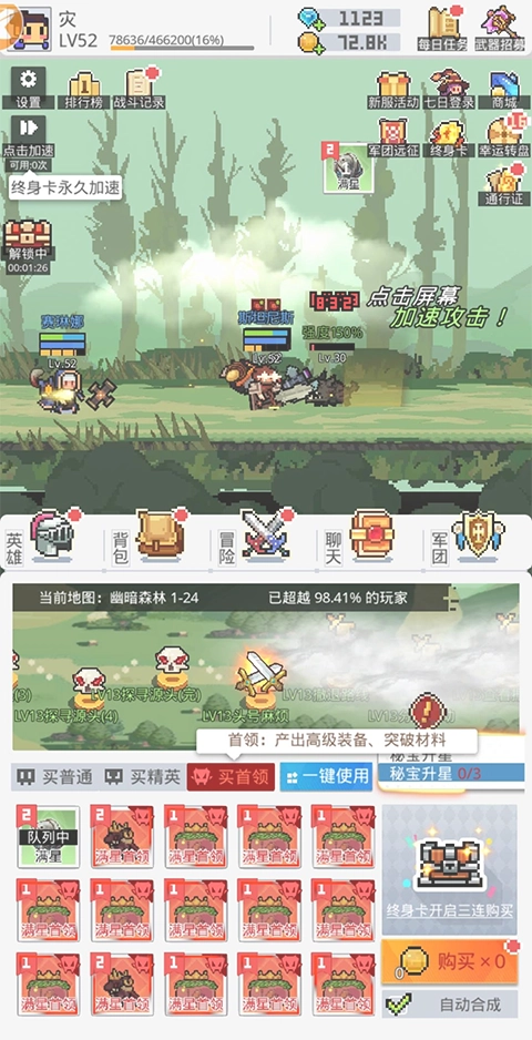 英雄远征玩法建议这样操作:先打一场,放一个英雄,打完后如果能打过就返回,重新找一个地图再放英雄拿奖励。每个地图的奖励都挺多的,不用担心没金币。
