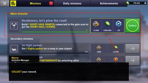 3、每日完成任务可获取金币,这些金币能用来扩建航站楼或者购置新飞机,与此同时,完成任务还能推动剧情发展,解锁更多新内容。