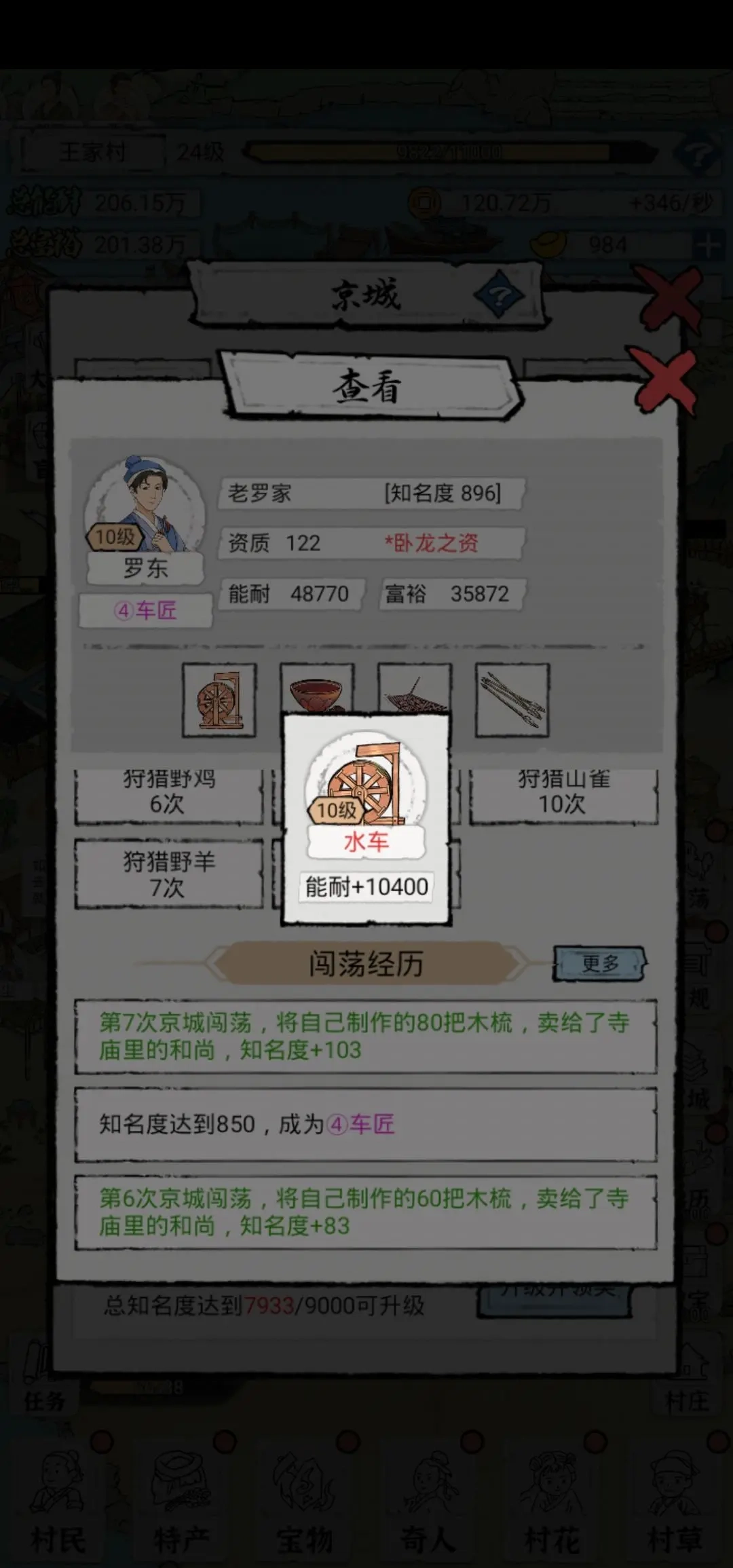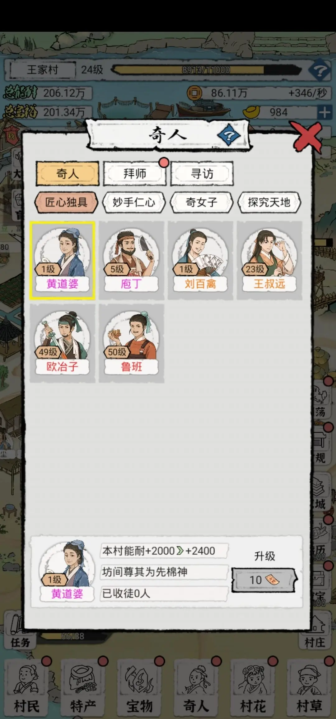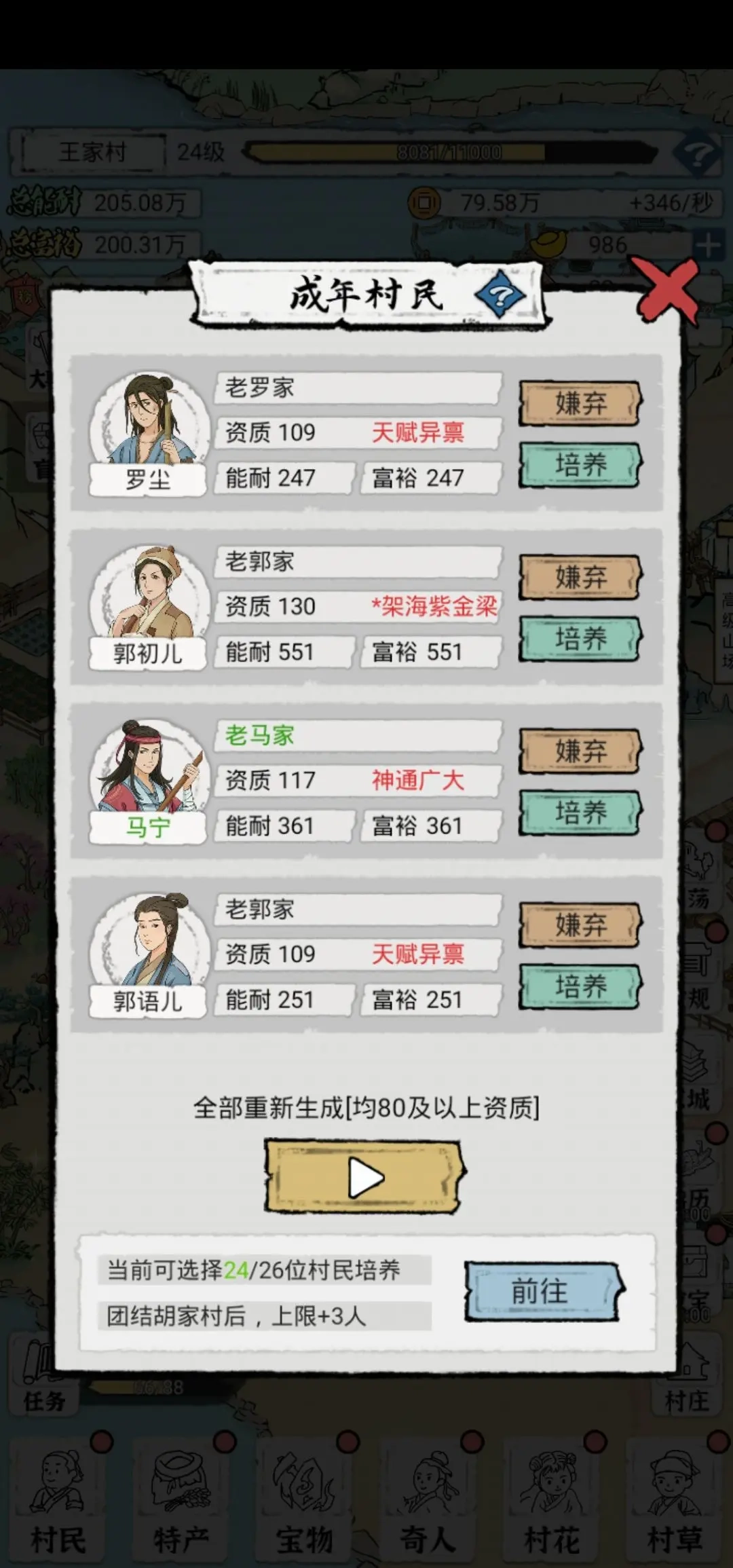 一、开局选择村民时,挑选资质最高的进行培养