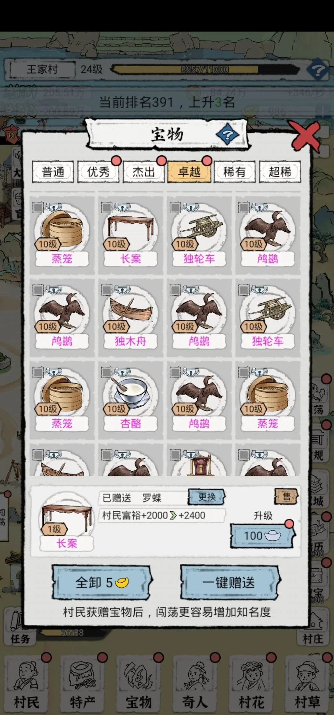 五、进京的宝物可卸可不卸。若不卸下,上供后会增加一些永久属性;若选择卸下,则没有属性加成,但宝物能一直保留且后续会涨价。