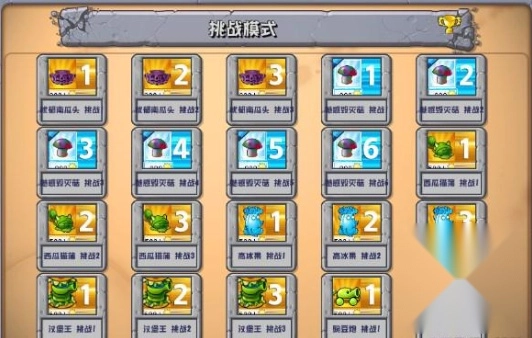 挑战模式的作用是获取金色植物,只要通关对应的关卡,就能得到相应的金色植物。建议先在冒险模式中获取强力植物,之后再去挑战这个模式。