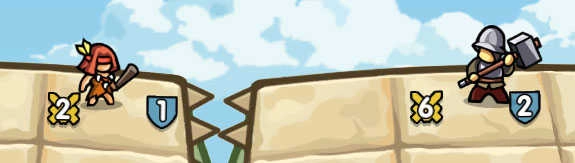 关卡核心在于两个角色的配合:愤怒农夫拥有横排无敌加攻的特性,亲切的大妈则能为其注入+1/+1的成长动力。两者一旦站稳脚跟,很快就能滚起雪球,让玩家陷入被动拆解的疲于奔命状态。