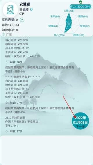 通过点击“下一年”推进时间进程,人生节奏由你掌控。每过一岁,角色状态、人际关系、社会身份都会随之变化,岁月流转中藏着无数伏笔。