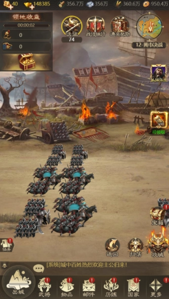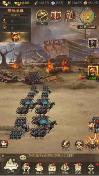 升级:通过战斗和任务获取经验,提升武将等级。