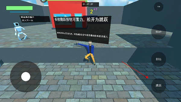 1、随后打开进入第一关,可通过滑动左下角的轮盘来操控角色移动。