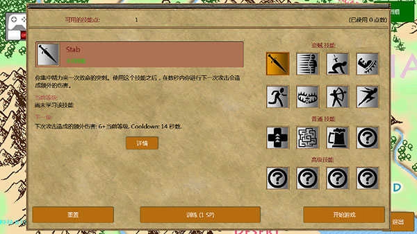 5、选好之后,点击“下一个”,我们可以挑选一个技能点,点击“训练”就完成选择了,接着点击“开始游戏”;