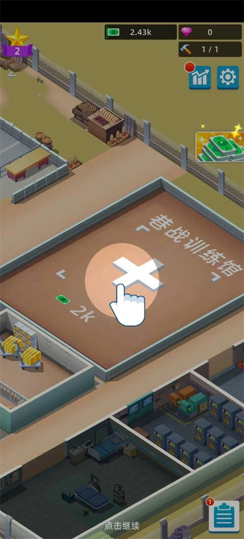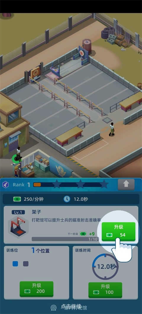 各种场地等着你来解锁!射击训练、障碍训练、室内目标射击、巷战、拳击、轰炸等一应俱全。您需要做的就是点击并升级它们,使用您赚到的现金来投资和升级您的基地,解锁不同的训练物品,提高声望,扩大和发展您的军队,并建立一个强大的军队商业帝国!