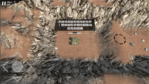 1、进入游戏后,玩家可借助屏幕左侧的虚拟摇杆来操控坦克的移动方向。