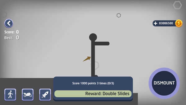 3、长按屏幕左下角的“DISMOUNT”按钮,以此来控制火柴人的移动方向。